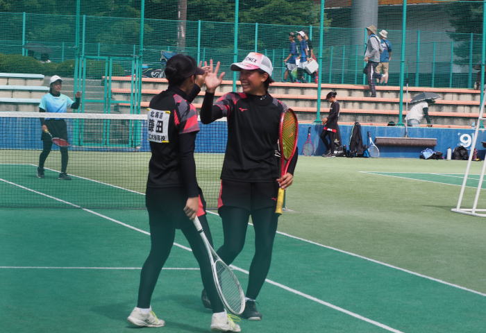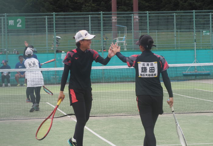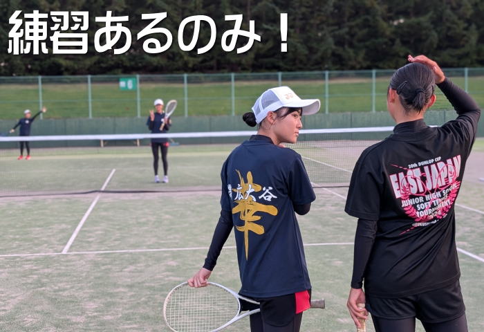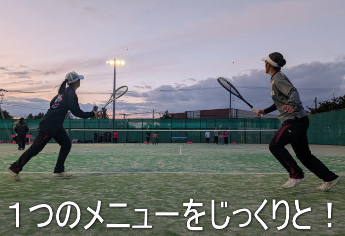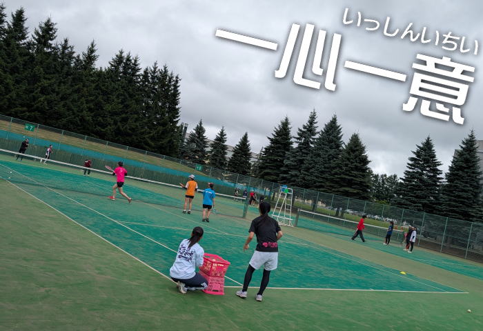 ↑女子は「全道で勝つ」ことを目的に、質の高い練習を繰り返しています。全道で勝つには、ポジションにこだわらず後衛でもボレーやスマッシュはもちろん、前衛でもストロークを当たり前のようにこなせる必要があります。サーブひとつでも、全員がカットサーブを打てることなど、やることがたくさんあります。次の大会が楽しみです!