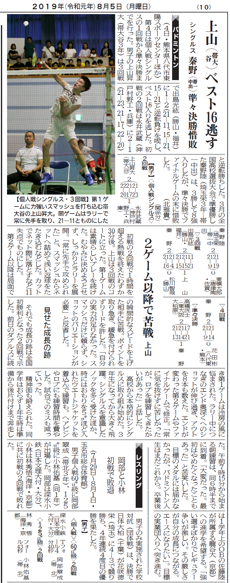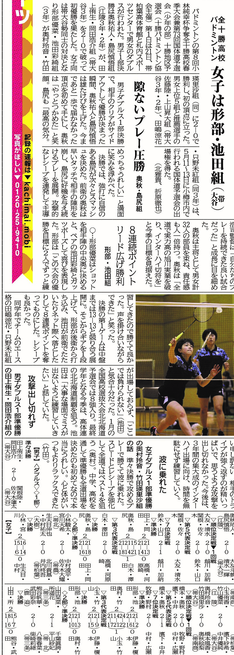- バドミントン部大会結果報告(全国選抜北北海道)