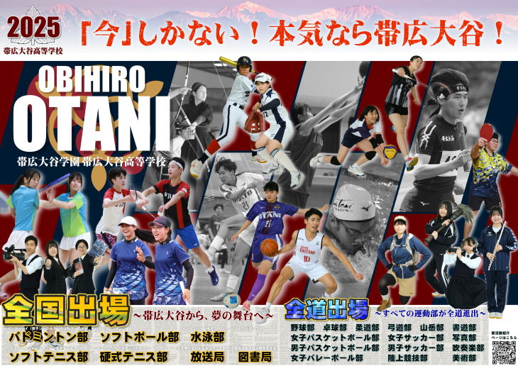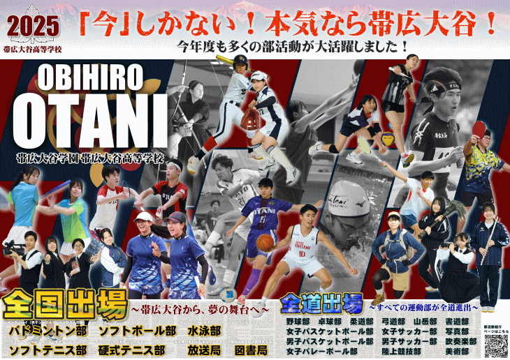 帯広大谷では、部活動に打ち込む生徒を全力でバックアップします。部室、体育館、各種専用グラウンド、テニスコート、トレーニング室を備え、生徒たちの実力を伸ばせる環境を用意しています。多くの生徒が様々な部活動に加入して、文武両道を目指しながら、充実した高校生活を送っています。そして、 毎年多くの部が、全国大会や全道大会をはじめとする各種大会において優秀な成績を収めています。