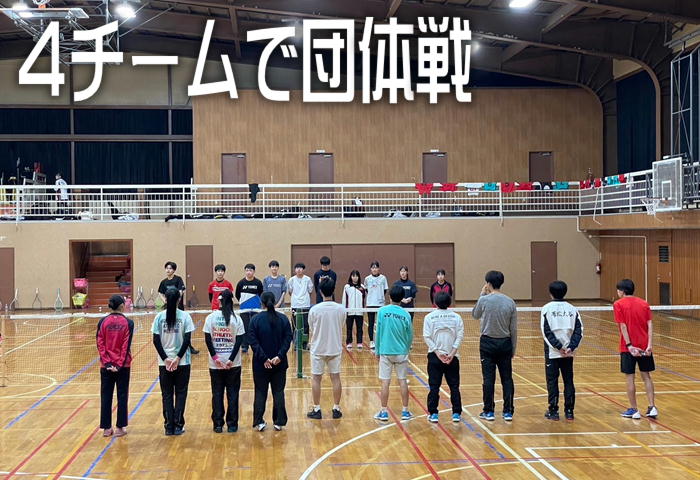 最後まで基礎練習でもよかったのですが、最後は「大谷杯」を実施。男女関係なく4チームに分かれての団体戦。どのチームも全力で応援しながらゲームをしていました。