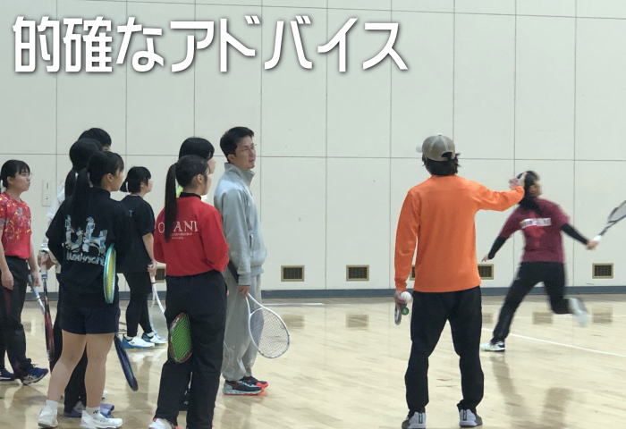 技術練習は、基礎から応用に展開する形でじっくり時間をかけて指導していただきました。ラリー中に1球でも先に攻めるためにはどうすれば良いのか?戦術も踏まえて説明していただきました。
