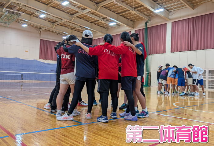↑第二体育館の写真です。男女ともに円陣からスタート。声が響くので自然とモチベーションもあがりますね!