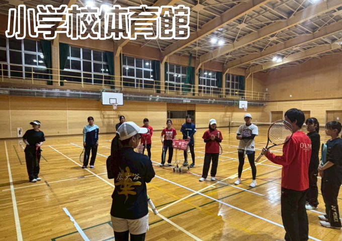 ↑日によっては場所を変えて練習をします。この日は小学校の体育館をお借りしました。
