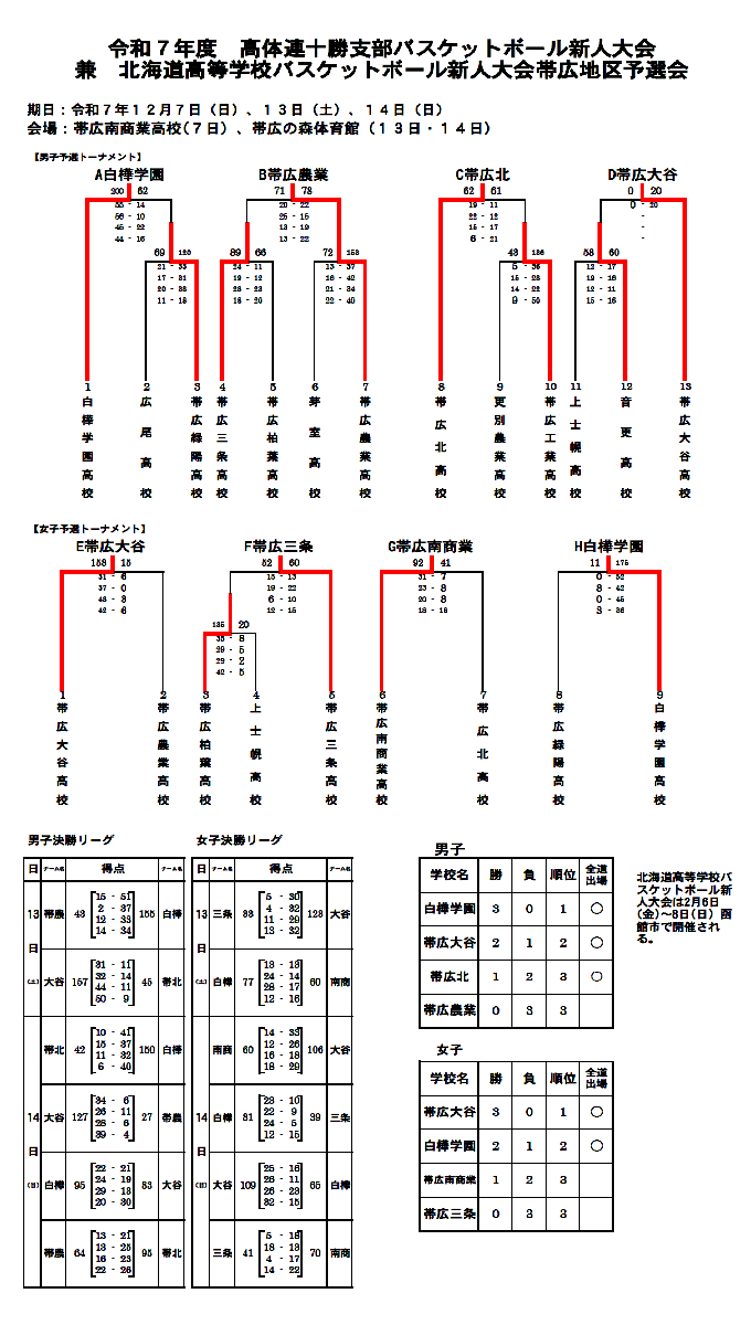 令和7年度高体連十勝支部バスケットボール新人大会兼全道高校新人大会帯広地区予選会