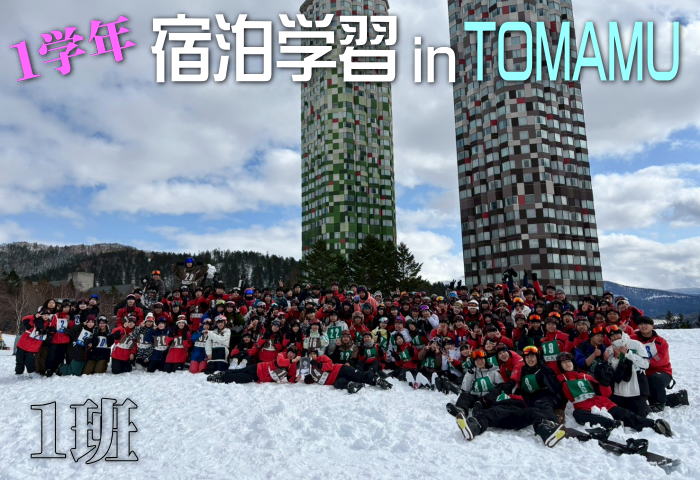 2学年は修学旅行に行っていますが、1学年はトマムで宿泊学習を実施しています!内容としては、星野リゾートで1泊してスキー学習を中心としたものとなります。到着後、3時間程度のスキー講習会に参加し、夕方からは夕食を含めた自主研修でした。クラス替えを控え、今のクラスで行う最後の学年行事です。嬉しいことに、カメラを向けると本当にいい表情をしてくれます。1泊しかない短い時間を全力で楽しみましょう!