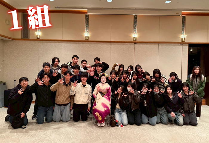 修学旅行経過報告(国内1日目) 2025年度の2学年修学旅行がスタートしました!今年度は国内組と国外組に分かれての実施。国内組は、関西圏で3泊、関東で1泊となっております。早朝6時45分に学校を出発。予定通り、新千歳空港を出発しました。 伊丹空港に到着後、まずは東本願寺を訪れました。ほとんどの生徒が初めて訪れる東本願寺。スケールの大きさに驚いている生徒が多くいました。 ↑夕食は京都市内の京料理店。関西ならではの味付け、普段はあまり食べられない料理。おいしくいただきました!明日からは自主研修が始まります! ↑夕食後には、国際交流館に寄りました。舞子演舞鑑賞のあと、一緒に写真を撮影させていただきました。