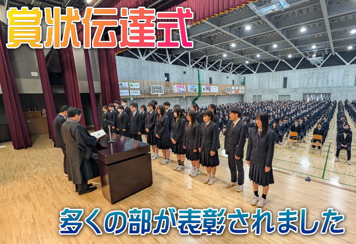 12月23日(火)全校集会が行われ、冬季休業に入りました。集会の中では、全道大会入賞者や全国大会に出場した部にたいして賞状伝達式も行われました。多くの部が大会やコンクールなどで素晴らしい結果をだしてくれています。