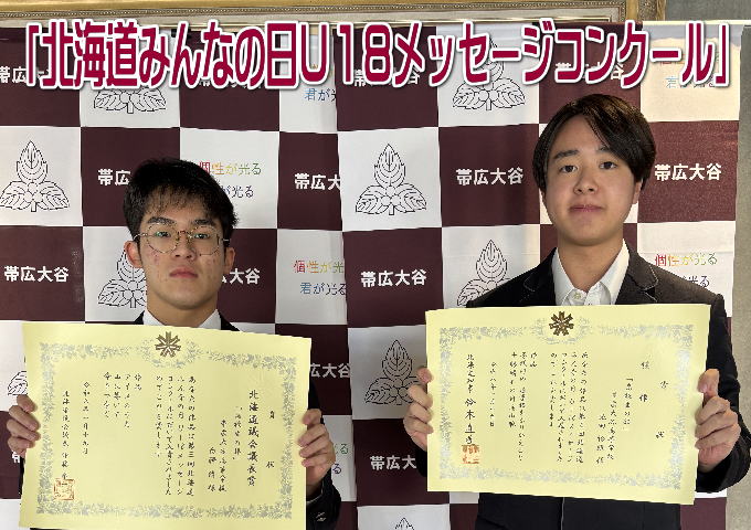 「北海道みんなの日U18メッセージコンクール」で入賞しました! 第3回「北海道みんなの日U18メッセージコンクール」において、本校の生徒が2名入賞・入選しました!おめでとうございます! 北海道議会議長賞 白澤 脩さん(2年) 「アイヌのうた 山に響いて 命をつなぐ」 佳作 池田 怜維さん(3年) 「冬明けの 通学路をふりかえると 十勝晴れの日高山脈」