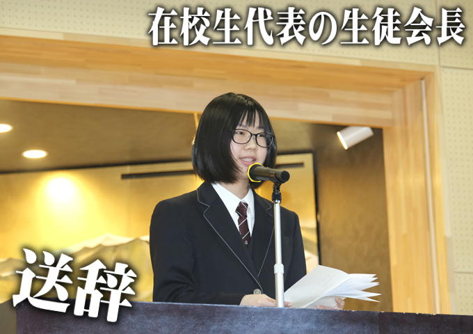 ↑後輩たちは参加ができません。在校生を代表して先輩達への感謝の気持ちを現生徒会長が丁寧に述べていました。