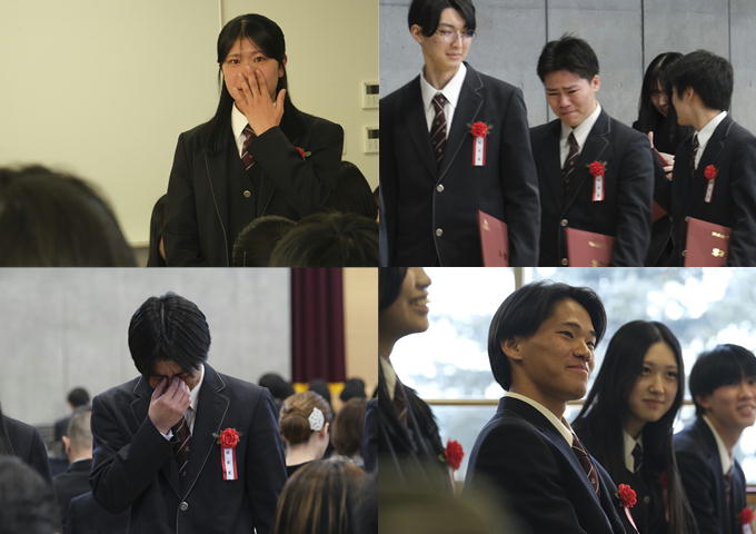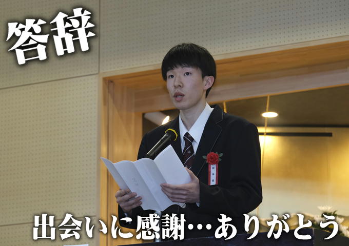 ↑卒業生代表の答辞。当たり前の日常に「感謝」、最高の仲間に「感謝」。気持ちのこもったまっすぐな答辞。会場の多くの人が共感し涙ぐんでいました。