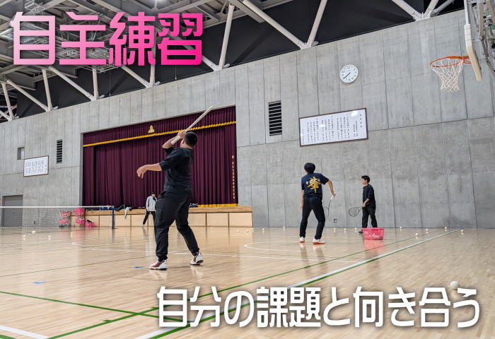 ↑体育館割り当ての隙間を使って「自主練習」の時間を確保しています。早い日は朝の7時から、遅い日は夜の19時からなど様々ですが、全体練習ではじっくり取り組めない「自分の課題」に集中できる貴重な時間です。
