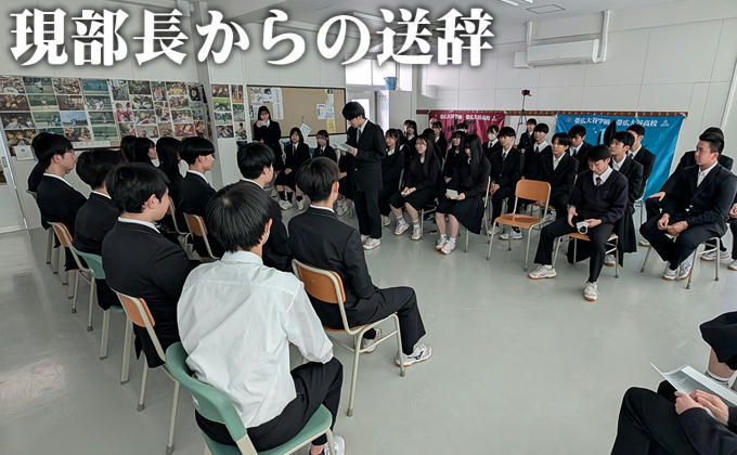 「新部長になった佐々木凜です。これから約1年間、部長として部全体をまとめ、部員みんなが楽しく部活のできるように頑張っていきます。また部活と学校のメリハリをつけ、個人戦は女子全ペア全道出場団体戦は全道ベスト8以上、男女アベック優勝を目標に練習に励んで行きます。そして結果だけでなく礼儀や感謝の忘れない部活に出来るよう頑張っていきます!」